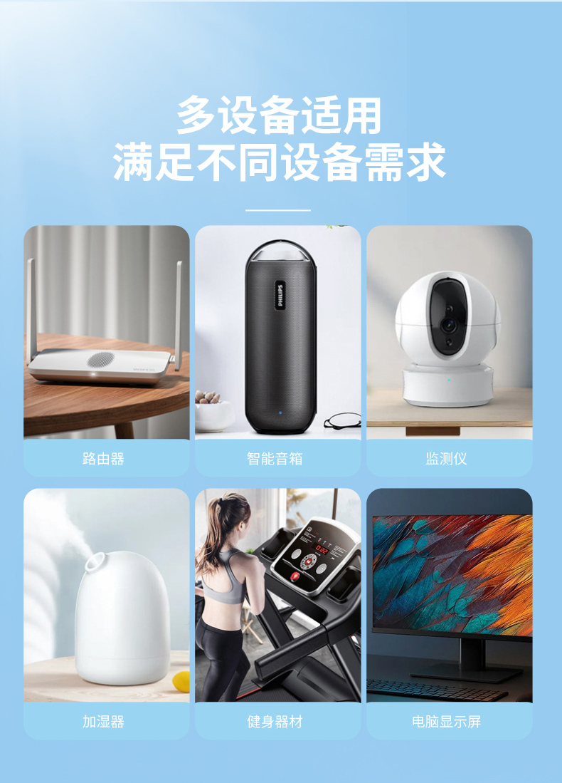 适用:扫地机、剃须刀、推剪、镜子灯、加湿器、香薰机、小电风扇、路由器、机顶盒、光猫机等小家电类产品