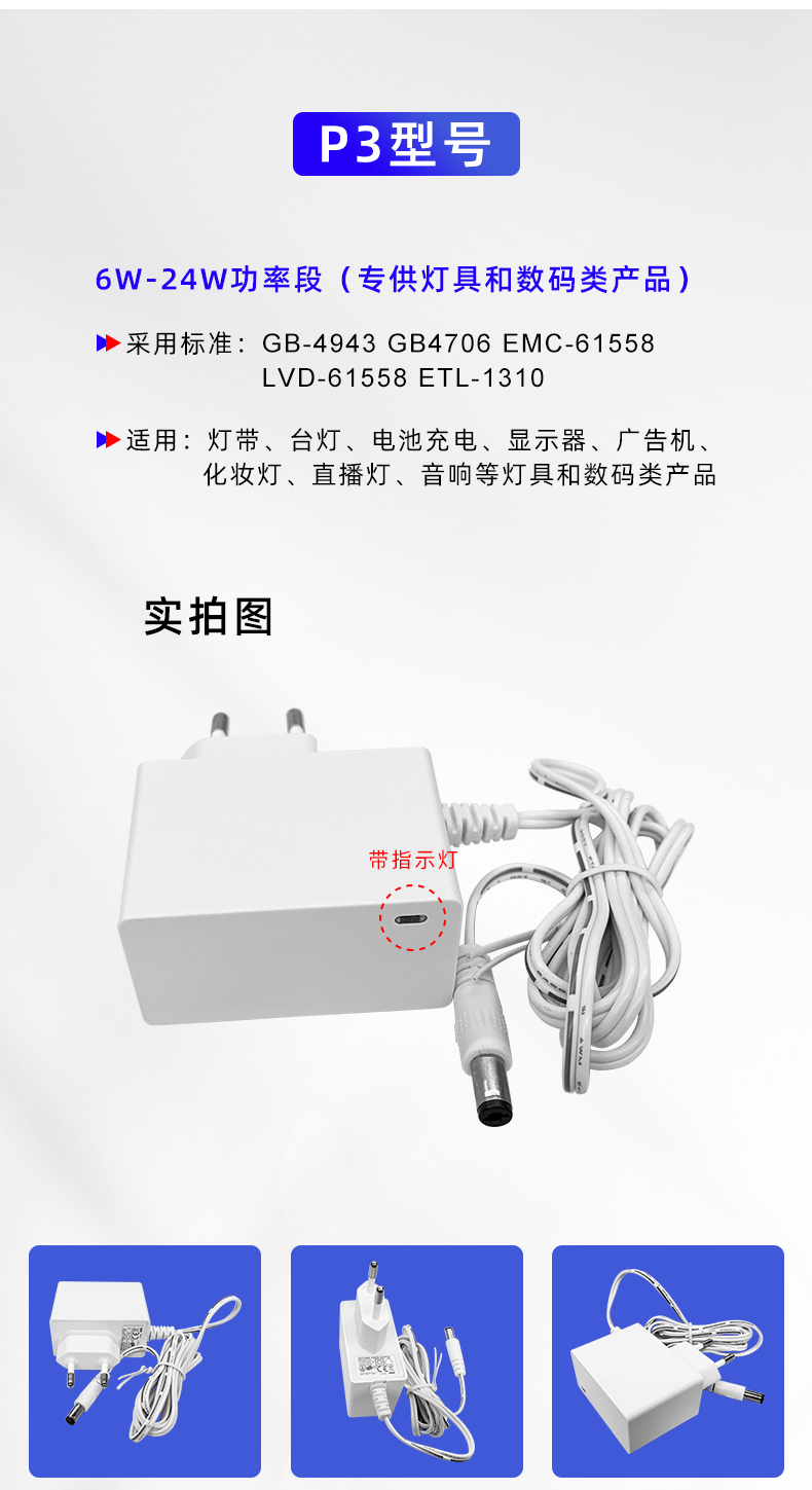 P3型号:6W-24W功率段(专供灯具和数码类产品)