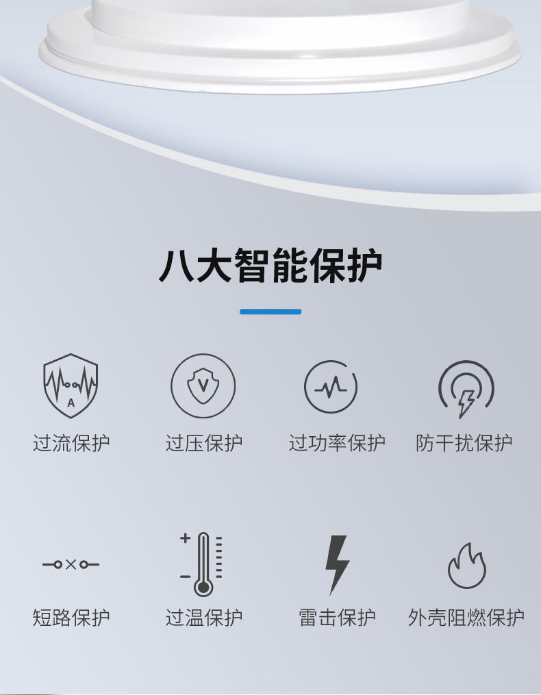 此款电源适配器具有人性化的设计。在外壳外部设计了LED指示灯,使用户能够直观的查看电源适配器的运行状况,能够为用户提供更加便捷、安全、人性化的使用体验。