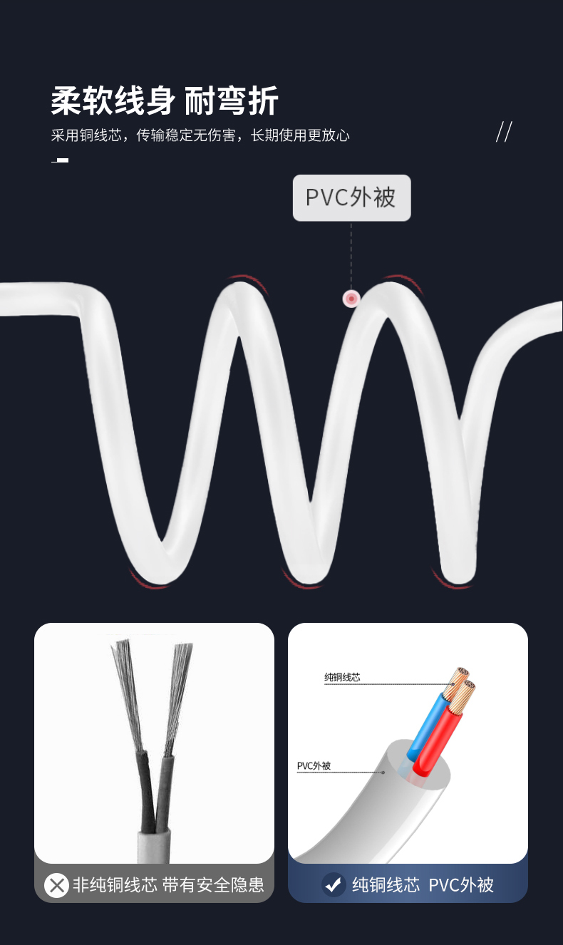 此款电源适配器采用简约、流线型的设计风格,外观简单美观,线条流畅,符合现代审美。